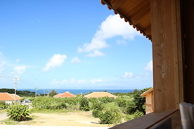 海が望める2階席は木に囲まれた落ち着いた空間です。雨や風が強い日でもご安心してお越しください。