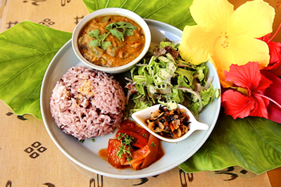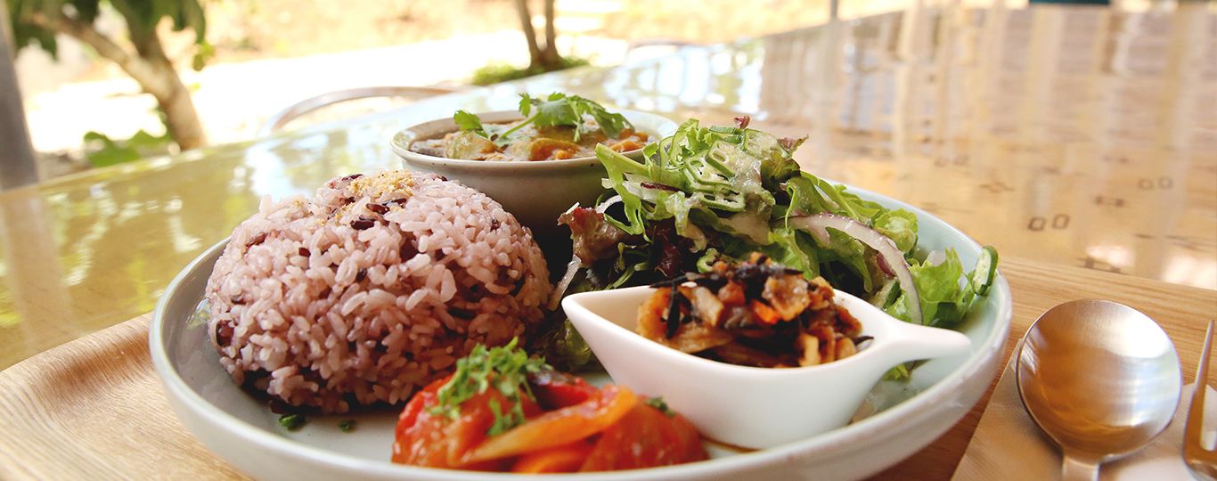 Yoga Retreat Village, kSaNa には、島の素材にこだわった「ぬちぐさカフェ」が併設されています。