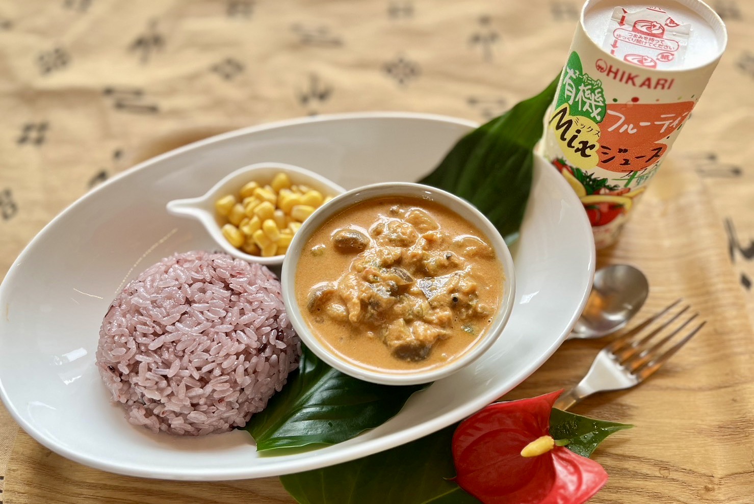 お子さま向けに辛味のないまろやかなカレーをご用意。オーガニックミックスジュース付き。