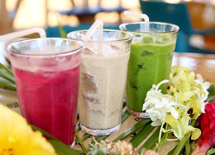 季節の島の野菜や、フルーツを使った身体と心に優しいランチプレート、スイーツやスムージーを、海を見ながらお楽しみください。