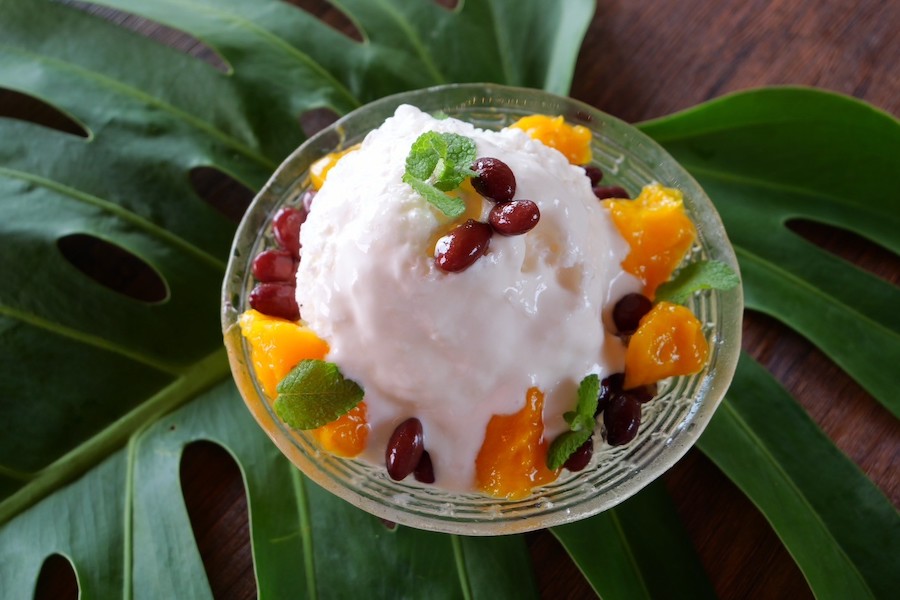 石垣島産ポトリ果マンゴー100%使用。マンゴーの香りをたっぷり味わえるぜんざいソースに、マンゴーをゴロッとトッピング。さらに、自家製金時豆煮とココナッツクリームを加えてさらに味わい深く。石垣島の夏の恵みをたっぷりと味わえる一品です。※【ポトリ果マンゴー®︎】日本最初の完全完熟マンゴー※