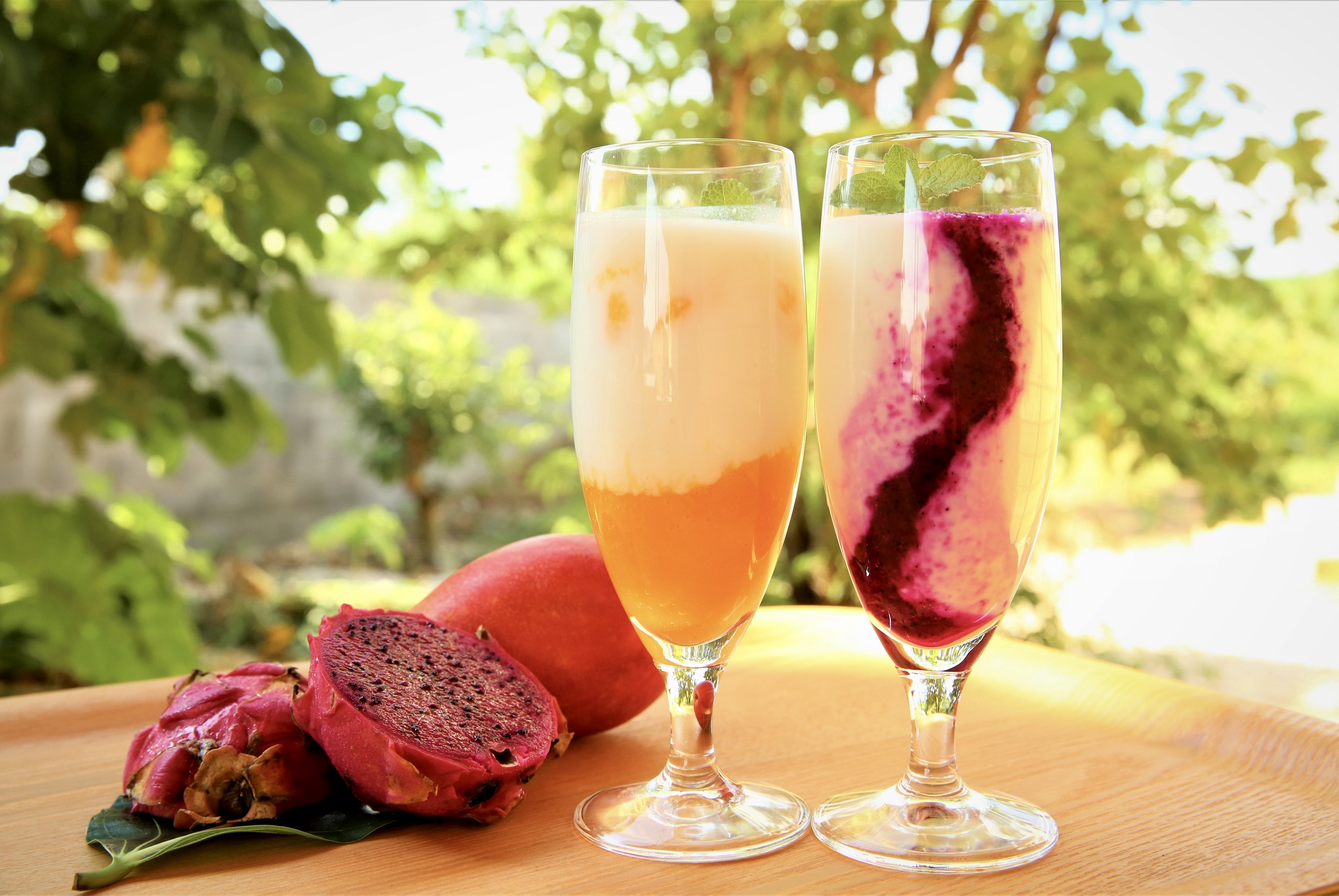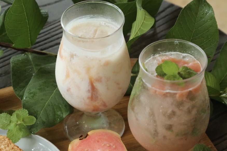 自家栽培の朝摘みミントと合わせたグアバミントソーダは爽やかな南国ドリンク。