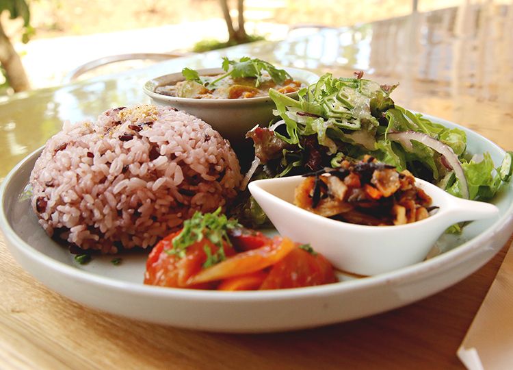 Yoga Retreat Village, kSaNa には、島の素材にこだわった「ぬちぐさカフェ」が併設されています。