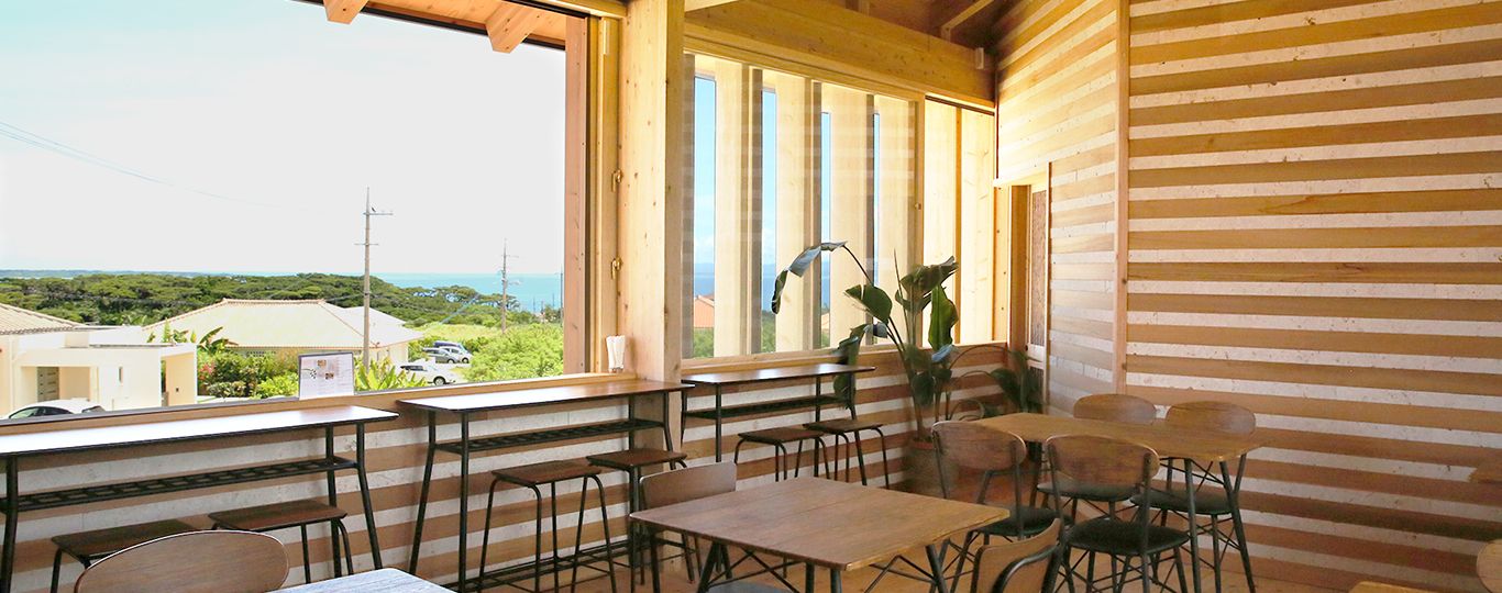 海が望める2階席は木に囲まれた落ち着いた空間です。雨や風が強い日でもご安心してお越しください。